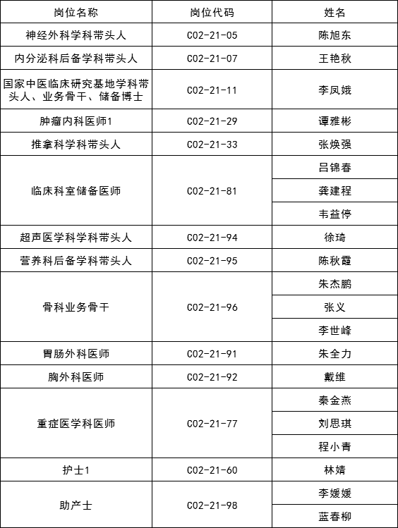 浙江中医药大学附属第二医院2021年下半年特殊专业技术岗位公开招聘经初试选拔,确定以下人员进入复试: