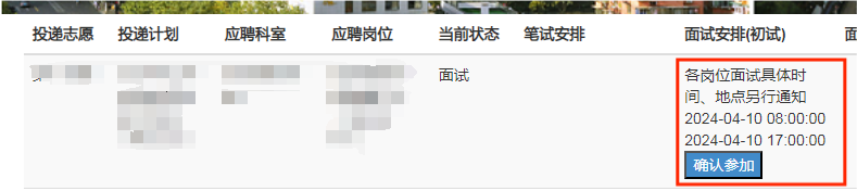 入围面试的考生请在电脑端通过医院招聘系统-个人中心-投递记录进行面试确认,面试确认截止时间为2024年4月1日(周一)上午9点,逾期未确认或确认“不参加面试”均视为自愿放弃面试资格。建议用电脑操作,推荐使用google浏览器。